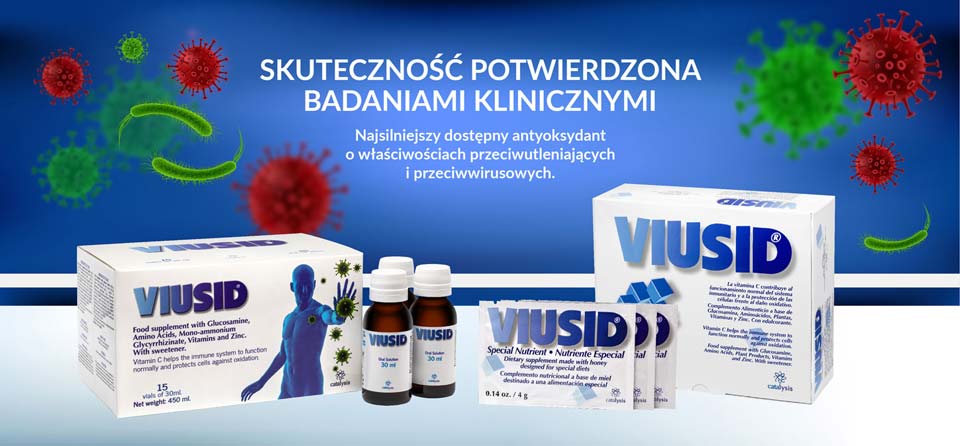 Viusid® jest preparatem nutraceutycznym o właściwościach przeciwutleniających i przeciwwirusowych. To najsilniejszy dostępny antyoksydant, który znacząco wzmacnia układ immunologiczny człowieka eliminując bakterie i wirusy, przez co wspiera organizm w walce z chorobami. Zawarte w preparacie substancje przeciwwirusowe i antyoksydanty eliminują negatywne skutki działania nadmiaru wolnych rodników, które powodują również ryzyko zachorowania na nowotwory. Bogactwo Aminokwasów, Witamin, Minerałów i innych naturalnych substancji zawartych w składzie VIUSID sprawia, że jest doskonałym uzupełnieniem terapii stosowanych w leczeniu najczęstszych zakażeń wirusowych i oddechowych.